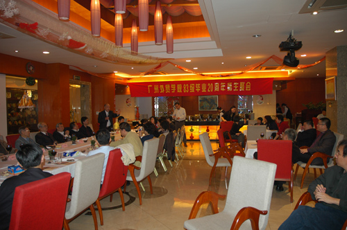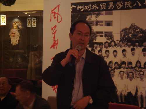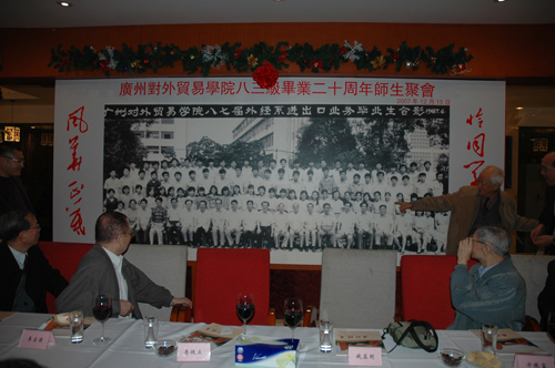 本网讯 12月15日,原广州外贸学院的42名83级校友在阔别了20年之后,再度聚首羊城,与恩师齐聚一堂,畅谈求学往昔,共叙真挚情谊。聚会在广州中央海航酒店举行。经贸学院院长李铁立、副院长林吉双、党总支副书记康为茂,前外贸学院钱益明院长、方振富副院长及多名老教师应邀出席了本次聚会。