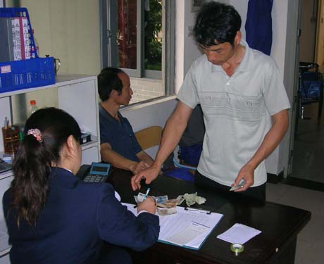 改革后,水费采用收取现金的模式,图为工作人员正在清点水费