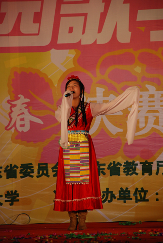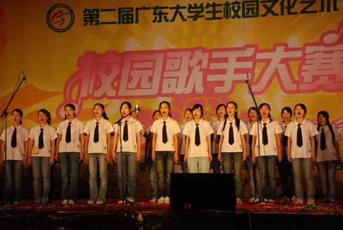 本网讯 12月10日晚,主题为“绽放青春,梦想校园”的第二届广东大学生校园文化艺术节之校园歌手大赛总决赛在广州大学城中山大学体育馆拉开帷幕。本次大赛分为业余组和专业组,我校07年“秋之声”歌唱大赛专业组冠军邓小敏、非专业组冠军祖巾轶参加了比赛。其中邓小敏是我校首位进入广东省校园歌手大赛专业组比赛总决赛的选手。经过激烈角逐,我校祖巾轶荣获业余组一等奖,邓小敏获得了专业组三等奖。