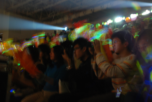 热情高涨的观众挥着荧光棒