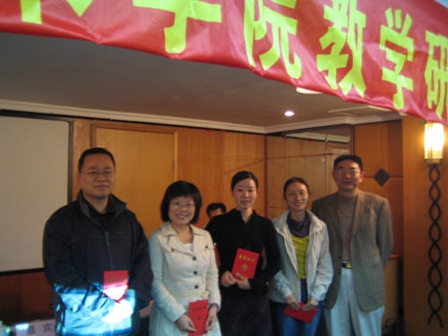 大会表彰了信息学院06—07年度获得“优秀教师”、“优秀本科生导师”,以及“优秀教学奖暨加德士奖”等荣誉的教师们。孙家和为马庆华、蒋盛益、何海燕等21位获奖教师颁发了证书。接下来,在本科教学建设中取得了突出成绩的7位教师代表先后发言。
