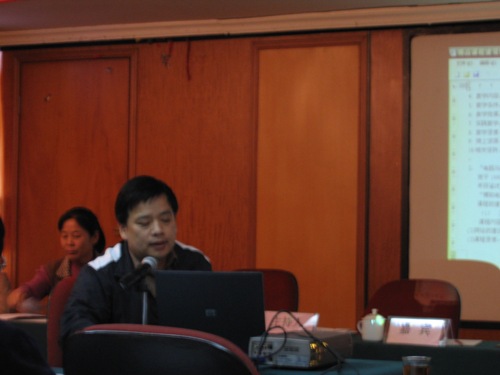 作为主管教学的副院长,李心广就“精品课程建设”发表了讲话。他肯定了本学院近年来在精品课程建设方面取得的成绩,通报了精品课程所要求的各要件,呼吁教师们重视精品课程建设,合力建设更多的省级、校级精品课程。