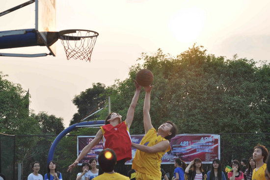 4月10日下午,广外杯篮球赛进入淘汰赛阶段。在南校率先开打的4场比赛中,男子组法学院,管理学院成功晋级。而女子组中,财经和管理也顺利跻身下一轮。