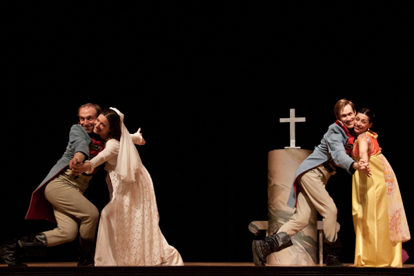 TNT剧院在我校上演的莎士比亚经典剧《无事生非》,让人领会到独特的莎氏风格。莎翁以独有的黑色幽默解构人性的善恶真伪。监视、诡计、窃听和谎言,剧情波澜起伏曲折回环;感情、公义、揭秘和真相,结局有惊无险皆大欢喜。这是在描摹戏剧,还是描摹生活本身?是善有善报恶有恶报,还是正义压倒邪恶,抑或是爱情原来好事多磨?当戏中人一切回到原点,观众是否有所领悟?又有谁知道呢?
