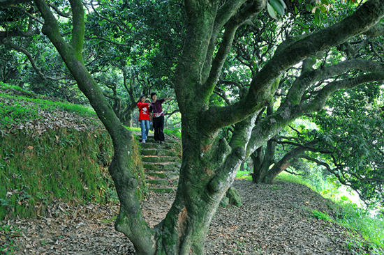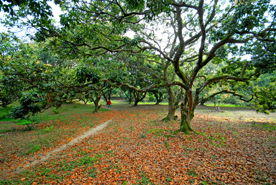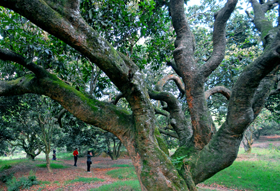 荔林处人迹罕至,远离繁嚣,古树历经风刀霜剑,吸天地之灵气, 纳日月之精华,茕茕孓立却兀自芬芳经年,遮天蔽日,苍翠依然。虽虬干苍皮,亦遒劲雄浑,盘根锯地恣意伸展,覆荫数亩。偶有枯木朽株,亦别具一格,自成丰韵。