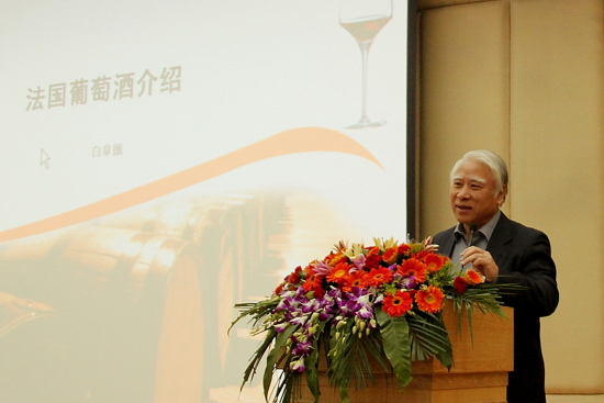 白章德从法国葡萄酒的来源与产区分布、辨别酒标的方法、葡萄酒的消费、保存四个方面介绍了葡萄酒。