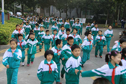 本网讯 3月28日7:55,正在早读的广外附属中小学里,突然响起了急促哨声,两座教学楼中,从小学一年级到初中三年级的学生立即开始快速地向室外撤离。楼道中有的老师戴着疏散袖标,指挥着学生们从不同的出口迅速疏散到操场区域。6分钟后,全校1500多名师生就全部从教学楼中安全疏散到操场。没有一名学生遗漏,也没有一名学生受伤。