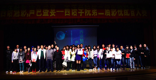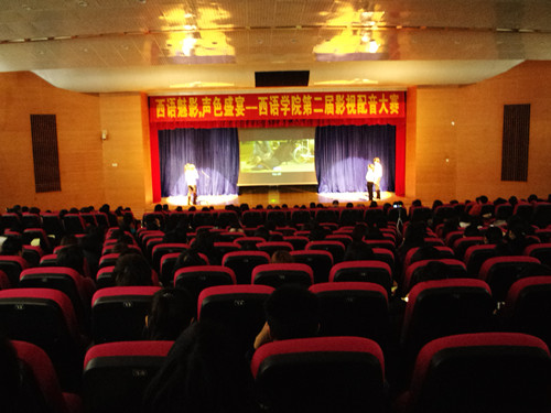 本网讯 3月25日晚,西语学院第二届影视配音大赛在我校六教报告厅盛大开幕。这是我院“欧罗巴文化节”的头一发礼炮。各语种的参赛队伍,在经过语系内部激烈的竞争中,过五关斩六将,脱颖而出,晋级此次大赛。西语学院院长郑立华,西语学院党委书记方华,副书记郝建萍出席了本次影视配音大赛。德语系老师滕奕丹,西班牙语系老师吴帆,法语系老师彭郁,俄语系老师郭利,以及意大利语系外教Federicd Belsi出席并担任本次比赛的评委。
