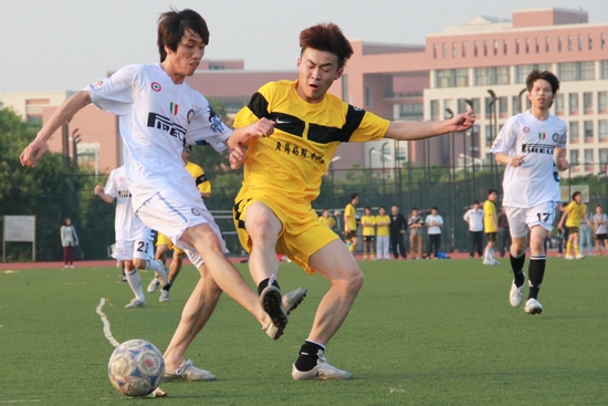 政管学院与管理学院对抗赛中 双方队员争抢球