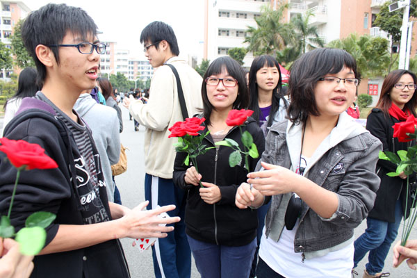 虽然广外女多男少是一个难以改变的客观事实,但女生们其实不必与其他学校比较,甚至有所抱怨,过女生节不在于收到男生多少的关爱,而在于通过女生节让广外女生了解到自己的重要性,更加爱自己,送给自己一朵“铿锵玫瑰”。