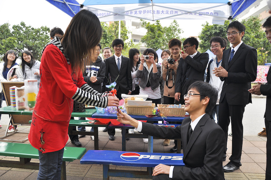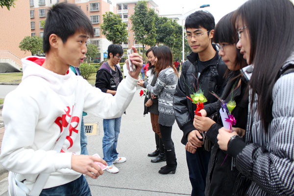 本网讯 你坐过山寨版黄包车吗?你见过真人表演的魔术吗?你收到过身着正装而又无比帅气的绅士亲手送你玫瑰吗?在3月8日的广外女生节活动上,广外南北校的女生们见证了节日里属于她们的感动。这是首次由勤工助学休塔正装独家举办的女生节活动。