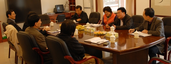 在第一会议室,外校领导班子向谢应东一行汇报了近期各项工作的开展情况。书记王秀民首先从学校的整体情况、新学期的工作思路、取得的成绩与面临的挑战4个方面进行汇报。王秀民回顾了外校的发展历程,提出学校目前面临的困难与挑战,并就毕业班工作、师资队伍建设、基础设施建设等情况做了详细说明。 随后,校长李建民进行补充阐述。他指出,在学校的发展策略上,仍要坚持“内涵优质化发展”的思路,通过精细化管理,强化质量,打造品牌。外校如今面临的问题涉及到今后是否能可持续健康发展,从外校乃至大学的发展角度来说,由于省内民办教育市场已经发生了变化,决定了我们下一步决策必须充分具备战略眼光,积极、富有创新精神地推进各项工作。