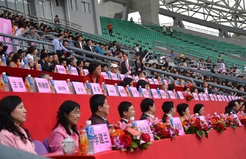 伴着广州亚运会志愿者主题曲《一起来,更精彩》的动感旋律,广州市木兰拳会的阿姨们身着清一色的金色武术服走进会场,开始了精彩的表演,展现出中老年妇女良好的精神面貌。随后入场的是广东外语外贸大学拉拉队的女孩们:蓝白相间的短裙装束,尽显少女的活泼与昂扬;随腰肢舞动的活力与青春,让每个人的心都随着她们的舞姿而律动!