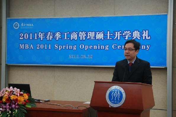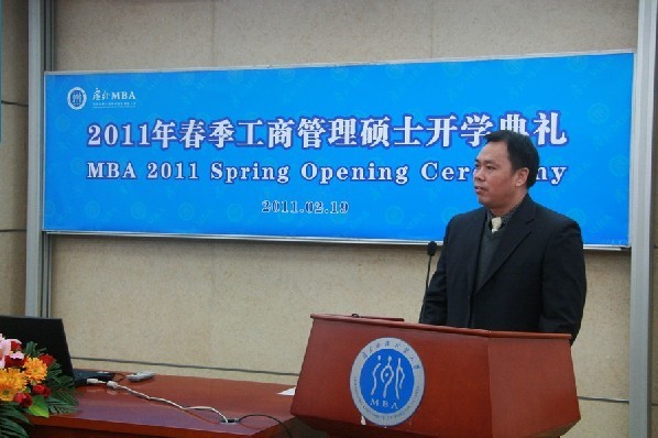 本网讯 2月19日,我校2011春季MBA开学典礼在北校区黄华讲堂(MBA教育中心103室)隆重举行。研究生工作部部长康为茂,MBA教育中心主任孟庆轩、执行主任孙建军、副主任曾驭然、主任助理马绍壮以及教师代表蒋涌等出席了活动。典礼由孙建军主持。