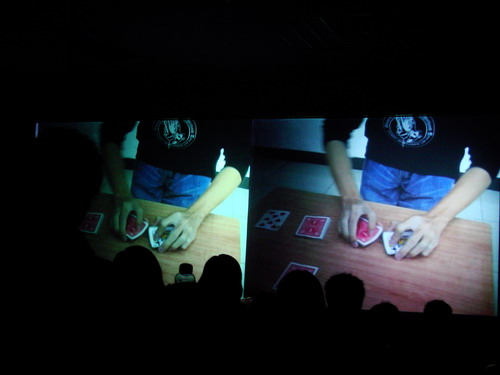 其他选手的扑克牌魔术也十分精彩。他们迅速地将四个A变成四个Q,把一副背面是蓝色的的牌变成红色……所有的变换在观众的眼皮底下发生,却无法让人看出其中的奥秘。激烈的竞争下,9号钟汉锋、6号李海英、8号张琪骊分别获得一、二、三等奖。