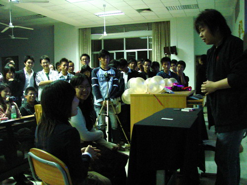 本网讯 11月25日晚,魔术协会在南校教学楼E204为我校学生献上了一次奇幻的、刺激的魔术旅程——近景魔术大赛暨专业魔术讲座,广州魔术联盟负责人陈绍明先生出席。
