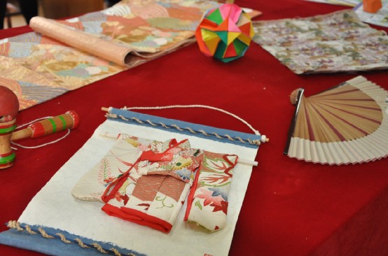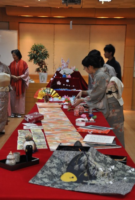 茶会在一教二楼分设茶席和点心席,其中二楼点心席不仅备有精致美味的日本新年菜肴,更特设了传统文化小展览,除了老师们提供的精美饰品,更有同学们亲手制作的梅花、人偶等折纸饰物。