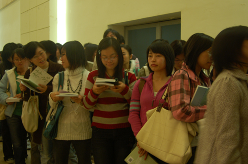 商英学院大二学生蒲同学说:“我很早就喜欢林清玄了,大概在初中的时候。这次机会难得,很惊喜这次能请到两位大师,所以一早就来了。”