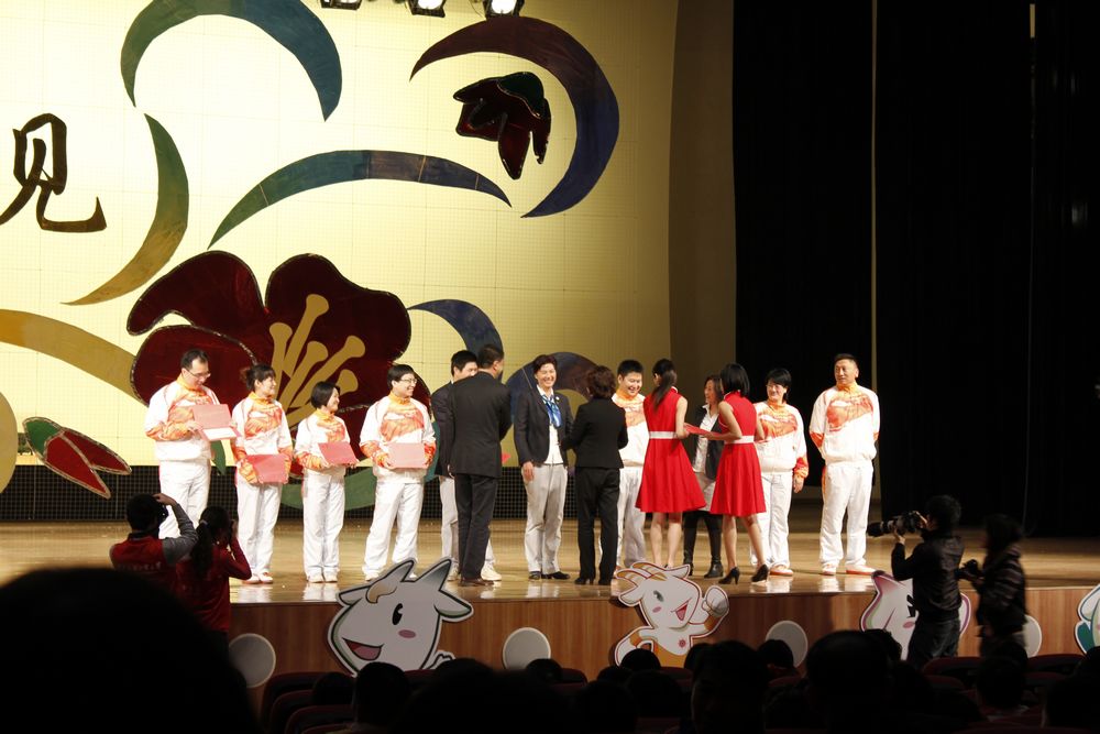 亚残总结表彰大会上陈平仲作为团队优秀工作者代表上台领奖