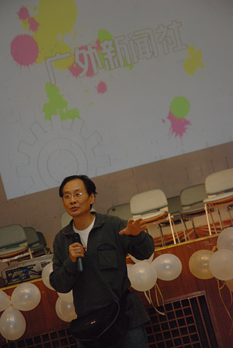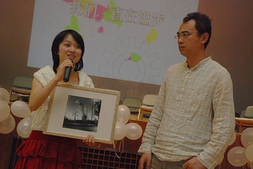 安哥老师也在热烈的掌声中走上舞台致词。他在讲话中肯定了广外的风气和文化修养,并激励广外的摄影爱好者继续以如此的热情去探索摄影的魅力,坚持拍身边的人和事,在练好基本功的同时要有新的突破。
