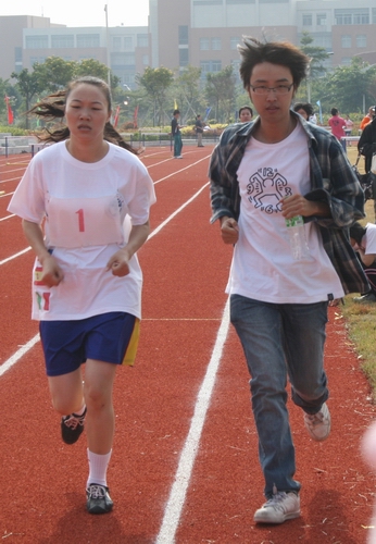 商英学院符同学的父亲和弟弟还到现场为她加油。符同学结束女子800米的比赛后,她的父亲表示对她今天的表现比较满意,但比赛是次要的,重要的是比赛能锻炼身体。