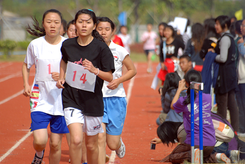 阳光和运动员的汗水共同挥洒在女子3000米决赛的跑道上。上午略显强烈的日照,对于参加3000米比赛的女运动员来说,体力问题是一个不小的考验。最终,经贸巾帼在女子3000米显示出绝对优势,来自经贸学院的梁慧华、刘彩燕、王凤珠分获该项目的冠亚季军,帮助经贸学院稳固了总积分榜的领头羊地位。