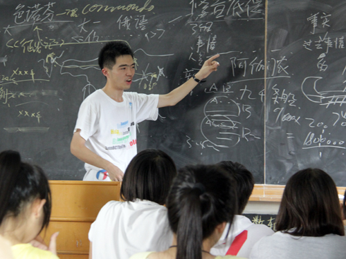 本网讯 自7月19日到达外海中学以来,西语学院三下乡志愿者团队北纬二十一在学校开展了趣味英语、英语语法、高中数学入门、毽球、太极拳等等富有特色的课程,提高了孩子们学习的兴趣的同时,也展现了广外大的教学特色,更拉近了师生间的距离。在开设的课程中,历史、语文、地理、歌剧欣赏等人文课程中,老师们各显神通,将课堂讲授的内容与自己的特长巧妙结合,给学生们的课堂带去了欢乐,也让他们学到了知识。