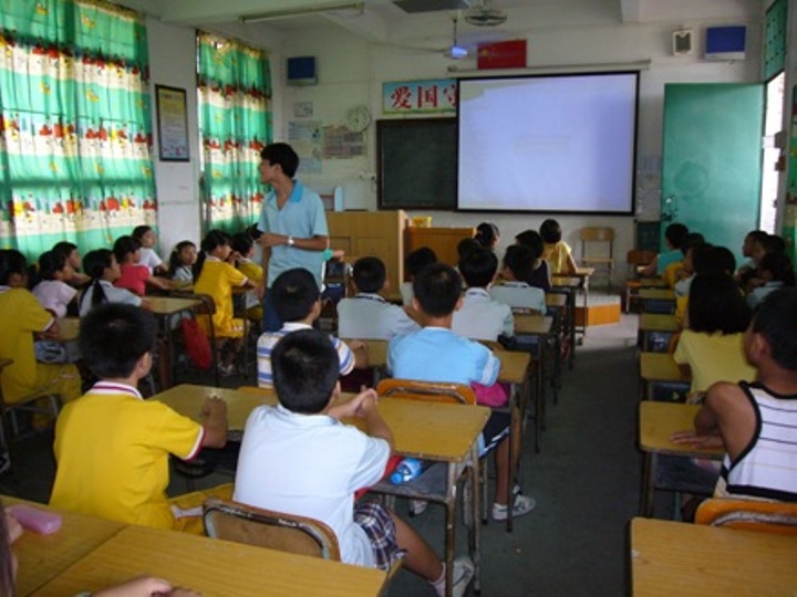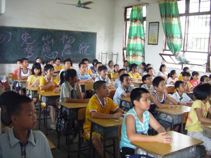 一大早我们就起来准备了,听说小学生平时是八点上课,昨晚的匆忙到来,给了大家个措手不及:在我们布置课室的时候,孩子们像热闹的麻雀般涌了进来,没有半点生疏,硬是让我们的义教队员有点惊慌马乱,也难怪了,他们生活了几年的学校!