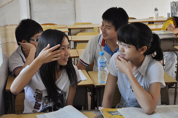 除了“Topic Training”之外,义教队员还安排学生们进行“Role Play”(情景角色扮演)这一环节,为学生提供一个情景让学生两人一组地进行对话。不少同学向记者表示,这种角色扮演的训练模式很新鲜也更接近生活、就好像在进行两个人的日常交谈,而义教队员提供的情景也都很有趣,让他们倍感兴趣。而义教队员则调侃这一环节:“这就好比两个中国人在英国当众骂街,其实可以很有效地提高学生的自信心和激发他们的急才。”