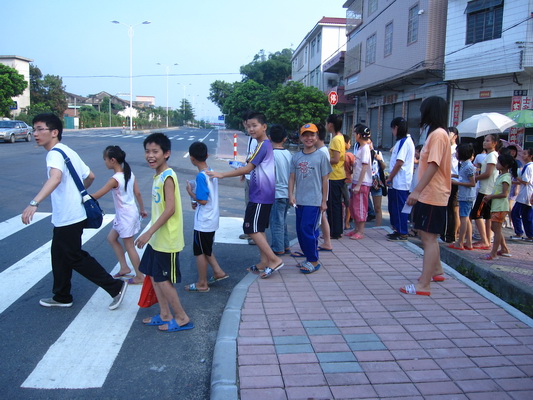 义教组成员护送小朋友们过马路