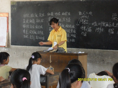 下午,老师们开始了他们第一次的上课体验。英语课里,同学们跟着老师大声朗读音标;数学课里,对奥数充满兴趣的小朋友抓着号称“百科全书”的老师狂问问题;亚运世博课上,老师声图并茂地给学生们介绍各种有关亚运和世博的知识,开拓他们的眼界;手工课上,通过制作一个小小的中国结,我们一起感受中国博大精深的文化……课堂在一片愉悦的气氛进行着。