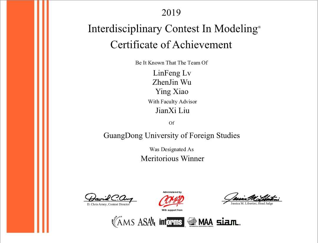 交叉学科建模竞赛(ICM)一等奖证书