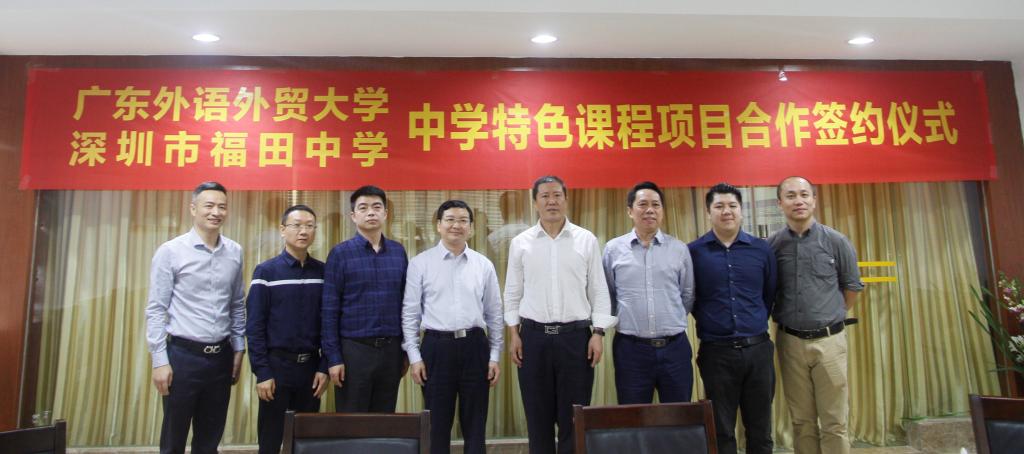 本网讯 3月29日上午,深圳福田中学校长王德久一行来访,与我校国际学院签订了中学特色课程项目签署了合作协议。据悉,中学特色课程项目以高中普通英语课程标准为基石,采取独特的“2+2+2”(高中2年+广外国际学院2年+国外大学2年)培养模式,6年时间即可以完成高中和本科教育,获国外一流大学的学士学位,是一次性解决“优质高中+名牌大学”的教育方案。