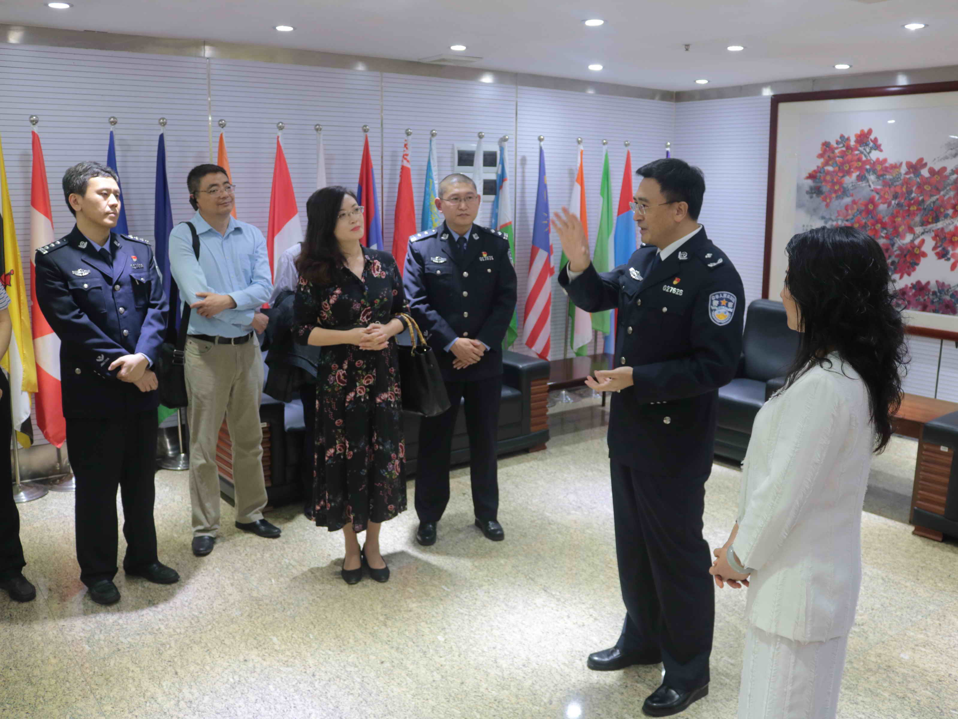 当天下午,广州市公安局出入境管理支队党委副书记、政委刘奕鹏向留学生学院党支部一行介绍了出入境管理支队签证大队党支部的党建工作情况,并强调支队时刻学习贯彻习近平新时代中国特色社会主义思想,工作开展均以便民为出发点,力求通过科技创新提升办证效率和服务水平。随后,众人参观了多功能展示厅,并进行了党支部结对共建交流座谈会。