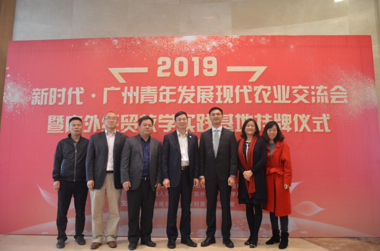 本网讯 1月26日上午,广州青年发展现代农业交流会暨广外经贸学院教学实践基地揭牌仪式在增城举行。校党委常委、副校长何传添,广州市委乡村振兴办协作组执行组长王爱民参加活动。经贸学院、校友总会、增城区商务局、时代中国、增城校友会、云创农业科技园相关人员及广外各地校友会代表、增城企业和村社代表也一同参与活动。