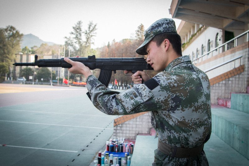 张教官在教授学生瞄准