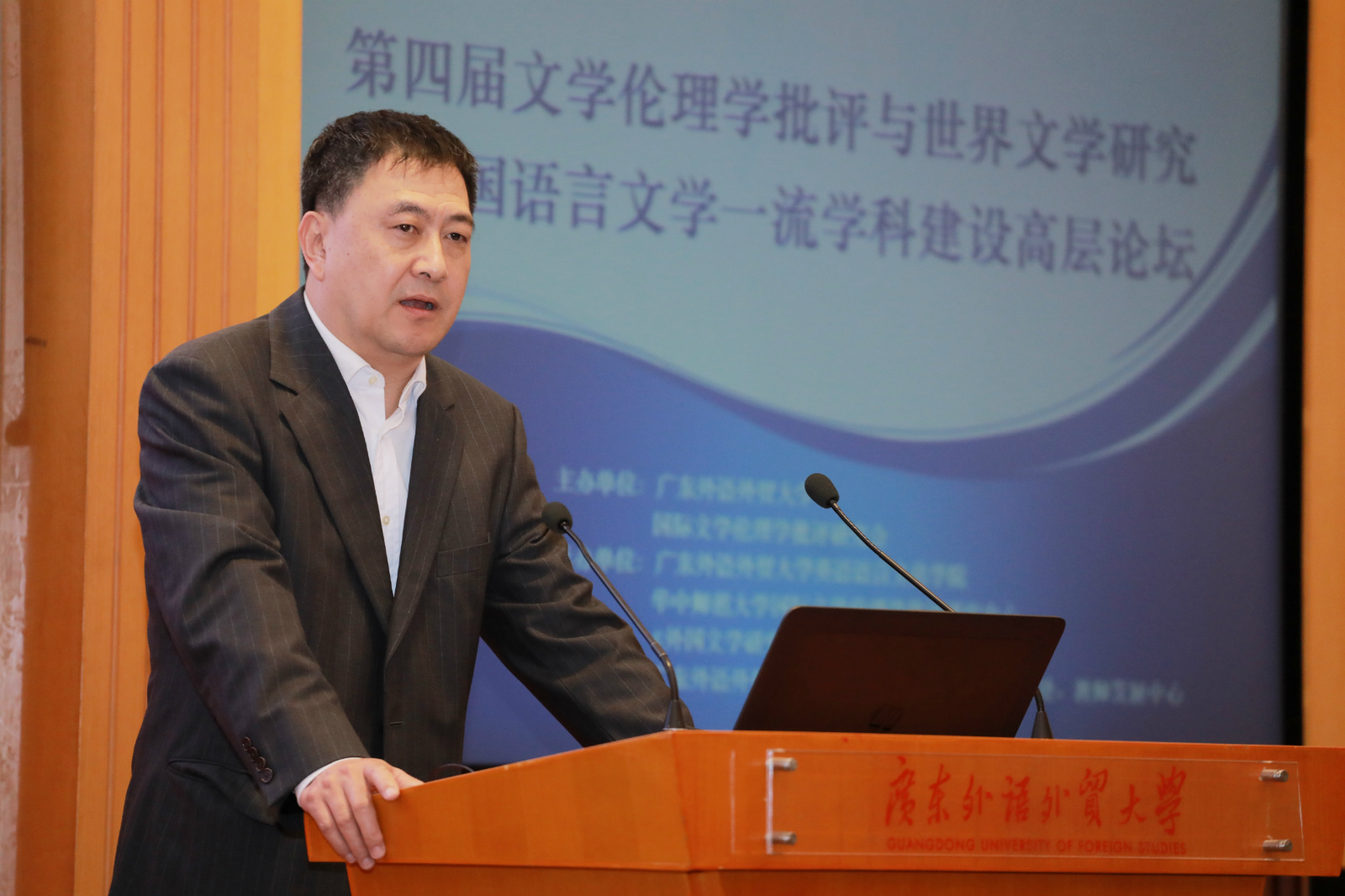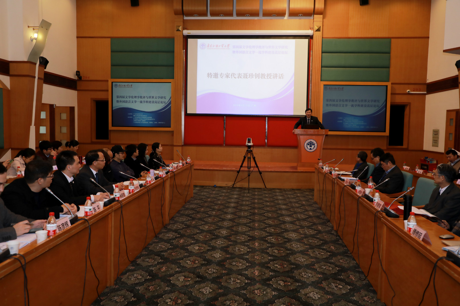 本网讯 1月19日上午,“第四届文学伦理学批评与世界文学研究暨外国语言文学一流学科建设高层论坛”在我校召开。我校党委书记隋广军代表学校致辞,并向专家介绍了我校外国文学研究的历史、现状和发展方向。特聘教授、中国外国文学学会副会长、浙江大学教授聂珍钊代表专家组致辞。我校副校长何传添、阳爱民出席学科建设与发展专家咨询会。上海市外国文学学会副会长、华东师范大学教授陈建华,中外文艺理论学会叙事学分会会长、江西师范大学教授傅修延,中国高等教育学会外国文学专业委员会会长、东北师范大学教授刘建军,中国法国文学研究会副会长、武汉大学教授罗国详,天津外国文学学会会长、南开大学教授王立新,中国中外语言文化比较学会会长、浙江大学教授吴笛,浙江省外文学会会长、杭州师范大学教授殷企平等外国文学的著名学者参加论坛。