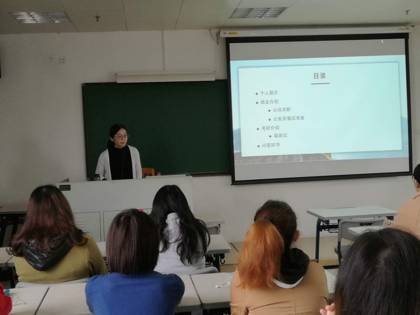 语言信息管理专业邀请系友林佳丹回校给师弟师妹们介绍本专业的就业和考研经验。林佳丹本科毕业于英文学院语言信息管理专业方向后考上研究生。她结合自己的就业和考研的经历向同学们传授经验,帮助大家明确了自己的努力方向。