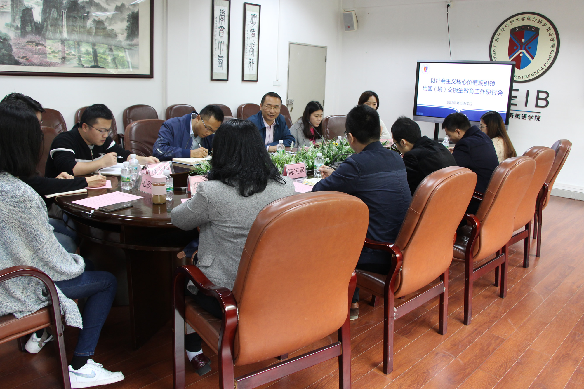 本网讯 为进一步培育践行社会主义核心价值观,落实“铸魂•系扣”工程,推进商英学院出国(境)交换学生的教育管理工作。1月14日下午,商英学院举行出国(境)交换生教育工作研讨会。党委宣传部、国际合作与交流处、西语学院、日语学院、中文学院相关负责人和学生代表参加会议。
