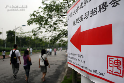 本网讯 5月31日,南校图书馆广场上人头攒动,2008大学城第三届暑期兼职实习招聘会在此举行。本次招聘会由我校学生勤工助学中心和国际工商管理学院团委学生会主办,勤工助学中心兼职服务办公室和管理学院勤工俭学部联合举办。