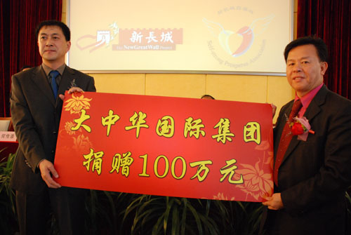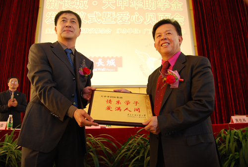今年6月8日大中华新长城项目在北京正式启动。在此,大中华国际集团与我校签定五年捐赠合约,每年帮助一百名贫困大学生完成学业,捐赠款总额达到一百万元人民币。陈红涛介绍说,在对大学生成才支持方面,以高校自强社为平台实施培训项目,广外大自强社则是广州各高校中的第一个自强社。