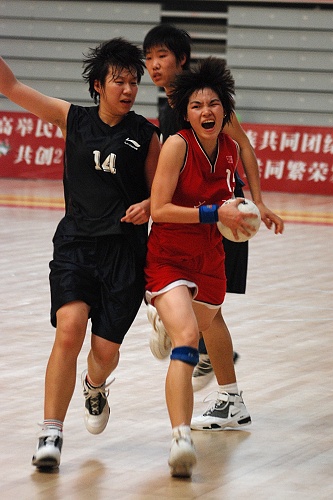 此前,广东队和河北队皆是以小组赛第二的身份进入四强。两队实力相当,一开场比分就紧咬不下。河北队持抄网队员利用身高优势,屡屡抄球入网。15号队员张明慧虽然身高不占优势,但穿插灵活,助攻队员从右侧得分。河北队渐渐将比分拉至17:12。经过暂停调整后,广东队马上跳投得分。河北队随即也回敬一球。接着广东队加强了进攻和抢断,其中11号梁国萍欲浑水摸鱼,无奈球过高,得分无望。随后,广东队进攻队员从对方防守队员中间投球,反弹入网,把比分追至16:19。河北队也不毫不放松,试图扩大比分,但上半场终以19:16,河北队领先3分的优势结束。