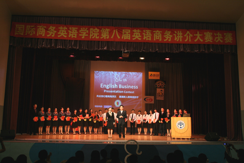 本网讯 11月7日晚,商英学院第八届英语商务讲介大赛决赛在南校区B8学术报告厅隆重举行。经过3个多小时的激烈比赛,E组国贸052班的队伍凭借对“真功夫”的精彩讲介,获得本次比赛的一等奖。B组商管054班的尤雅凭借流利的口语、敏捷的思维以及优雅的台风获得最佳讲介风采奖。