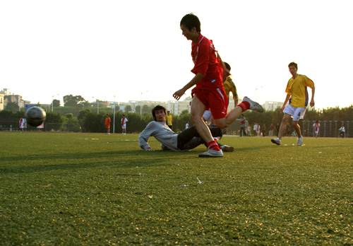 本网讯 11月4日下午,“广外杯”男子足球赛小组赛阶段最后一轮全部结束。在A组的最后两场比赛中,经贸学院4:0击败法学院队,政管学院虽以6:1大胜艺术学院,与法学院同积4分,但仍以一个净胜球的劣势惨遭淘汰。至此,“广外杯”南校赛区四强全部产生,继B组新闻学院、信息学院出线之后,经贸学院与法学院也在今天的比赛结束后携手晋级八强。