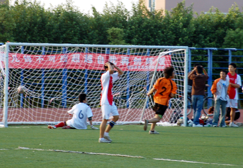 在同时进行的另一场比赛中,政管学院虽然以6:1大胜艺术学院。但一粒乌龙球把他们拦在了南校区四强大门之外。A组小组赛战罢,经贸学院三战全胜积9分列第一,法学院积4分净胜球数2个排第二,政管学院同积4分净胜球数1个排三,艺术学院排第四。经贸法学携手进入南校区四强。