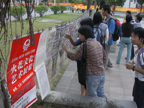 同学们在火花展前流连