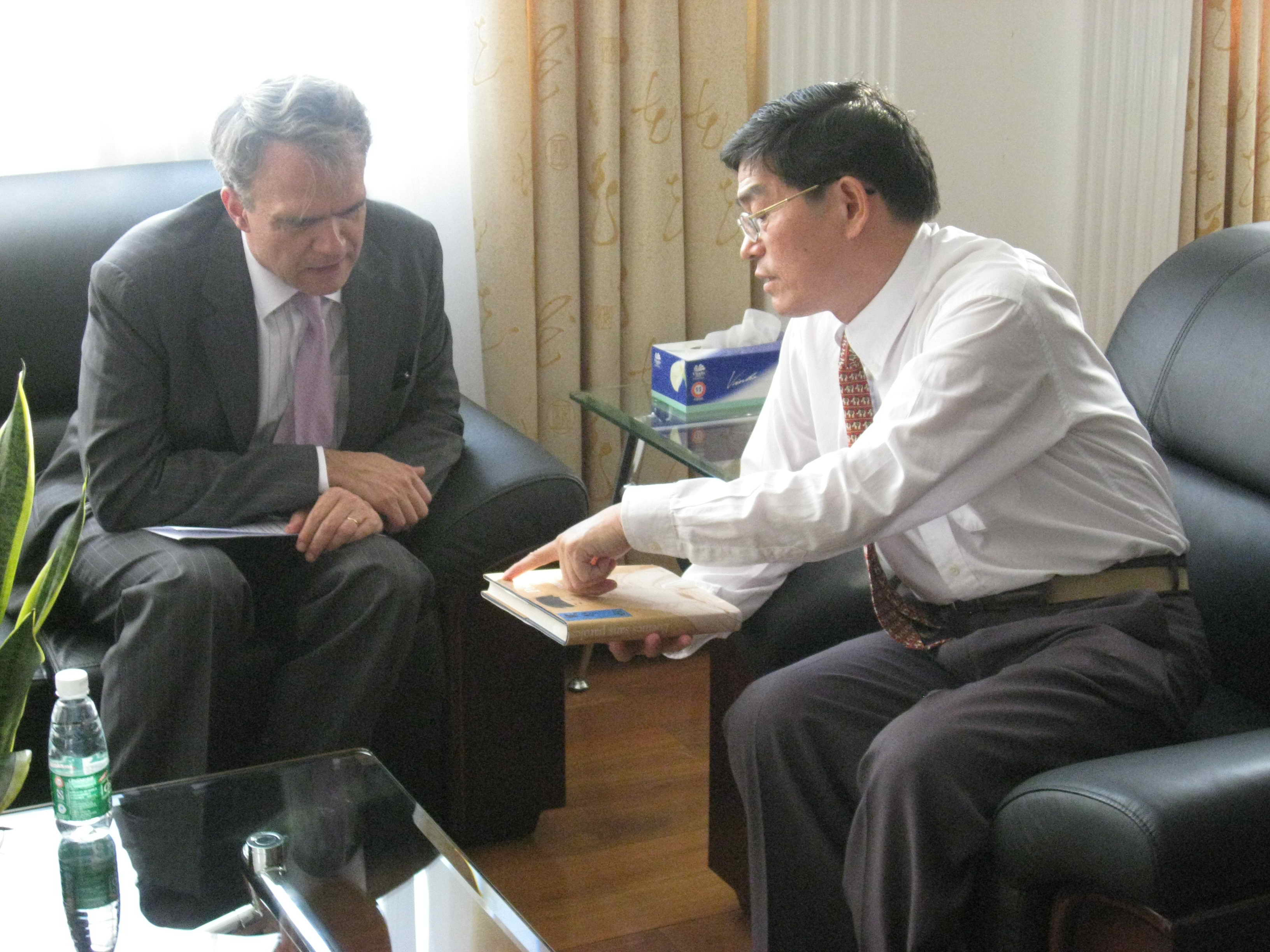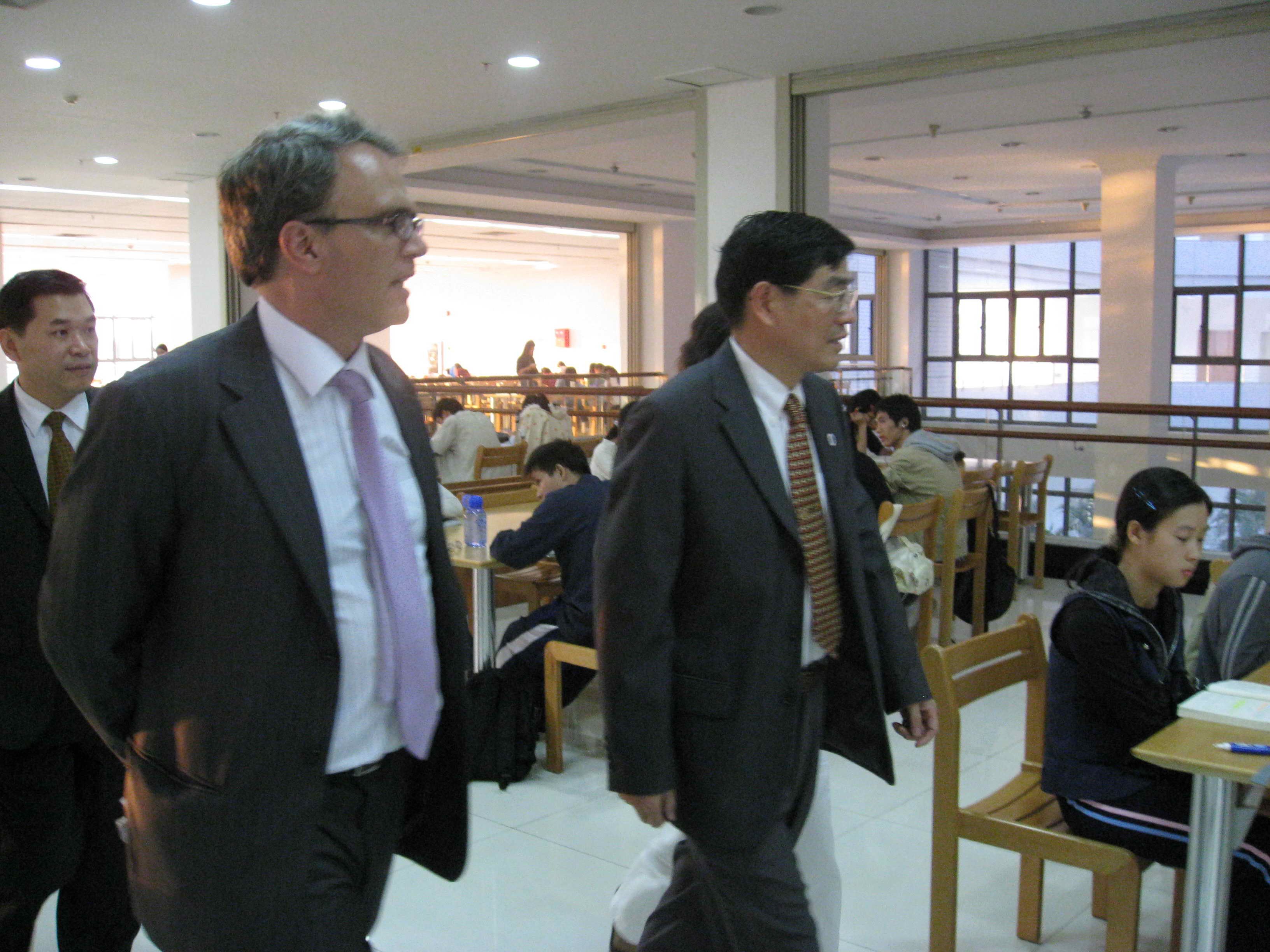 最后,双方在图书馆接待室进行了会谈,就开展教育文化合作交流交换了意见。章泰年对我校大学城的快速发展表示赞叹,希望今后能与我校合作在大学城开展更多的文化活动。