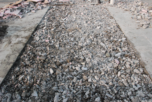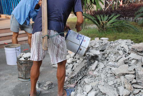 从天台搬下来的土石堆放在宿舍楼下