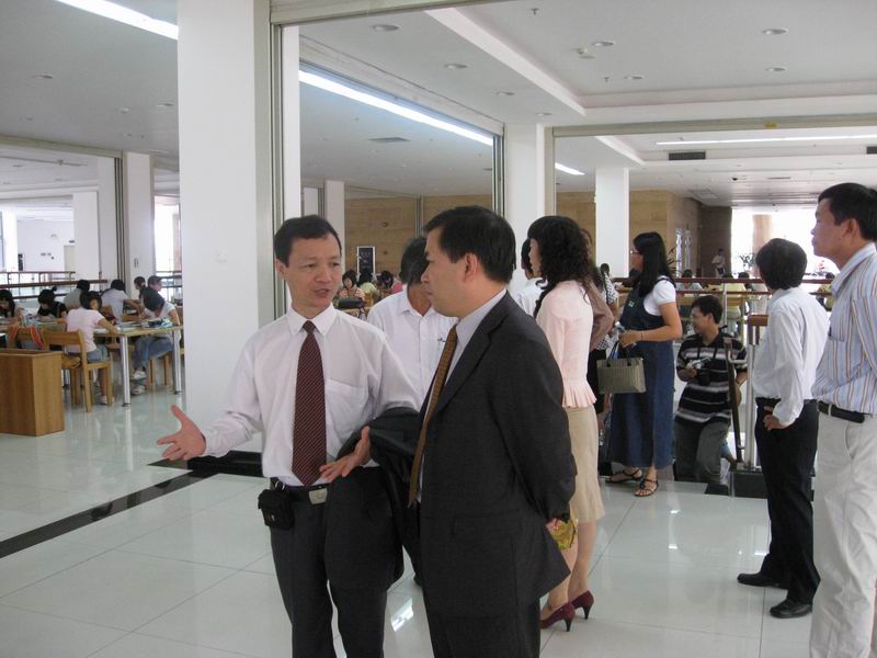 随后,越南客人还参观了校园。在参观过程中不断与我校陪同的各部处领导进行交流,对我校大学城校区建设给予了高度评价。一位越南客人由衷地说:“广州大学城的建设速度快,效果好,广外新校区的建设与管理的经验更值得我们参考和借鉴。”