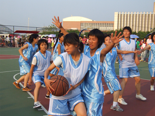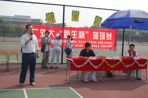 10月18日下午,由校体育运动委员会主办,校体育部、校团委和校学生会承办,校篮球协会和各学院体育部协办的“07新生杯”篮球赛在南校区篮球场正式拉开帷幕。首日分别有三场男子组比赛和三场女子组比赛,最终,男子组管理学院以30:18战胜了法学院,信息学院29:23胜险新闻学院,经贸则以59:17完胜艺术。女子组方面,管理、政管、经贸分别以41:8、35:4、23:2大比分战胜法学、艺术和商英学院。 下午2:30,在南校区体育场首先举行了2007级“新生杯”南校区赛场的开幕仪式,校团委副书记何越晖,校学生会主席欧少彬及校篮球协会裁判组组长钟永晴出席了开幕式。首先,何越晖致开幕词,他希望借助“新生杯”这个交流的平台,促进新生之间的友谊,挖掘有潜力的体育苗子,展现新一届广外大学子的活力与风采。随后,裁判员代表钟永晴和运动员代表进行了宣誓。